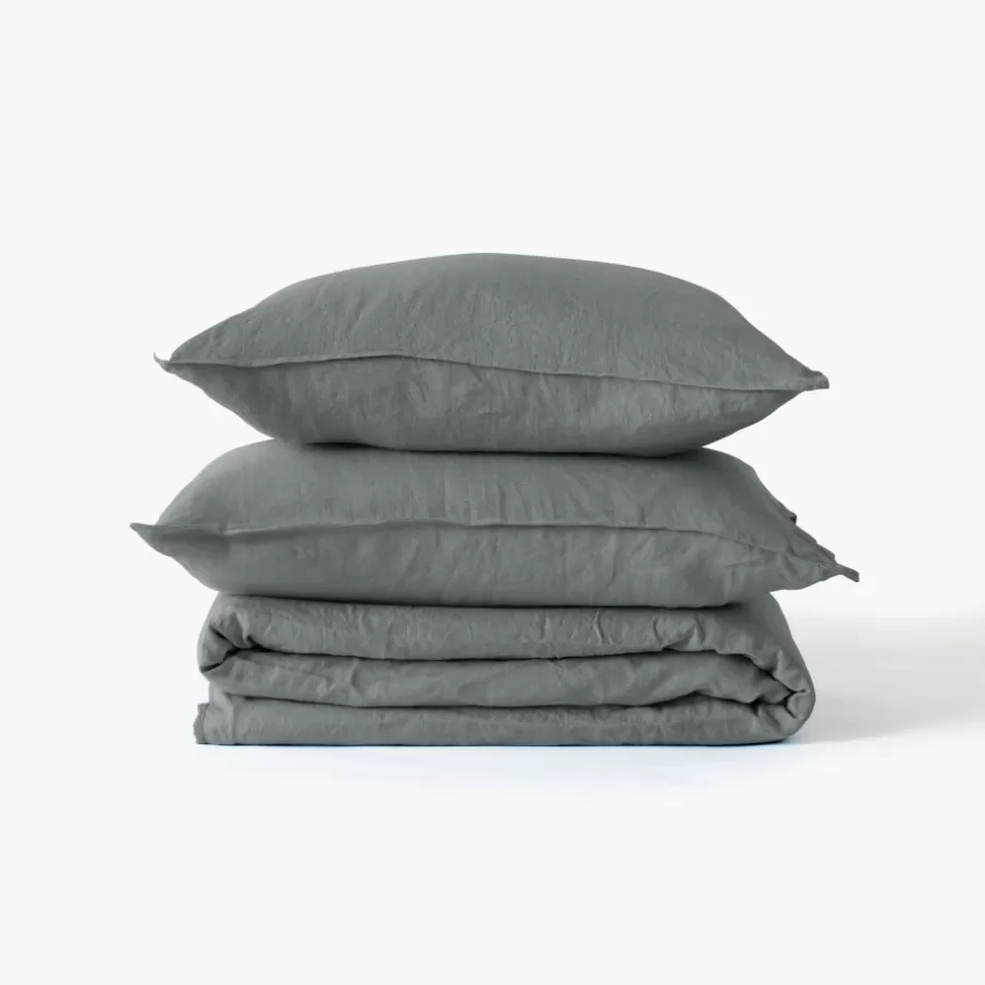 Une housse de couette unie en lin et coton lavé pour un effet respirant et thermorégulateur.